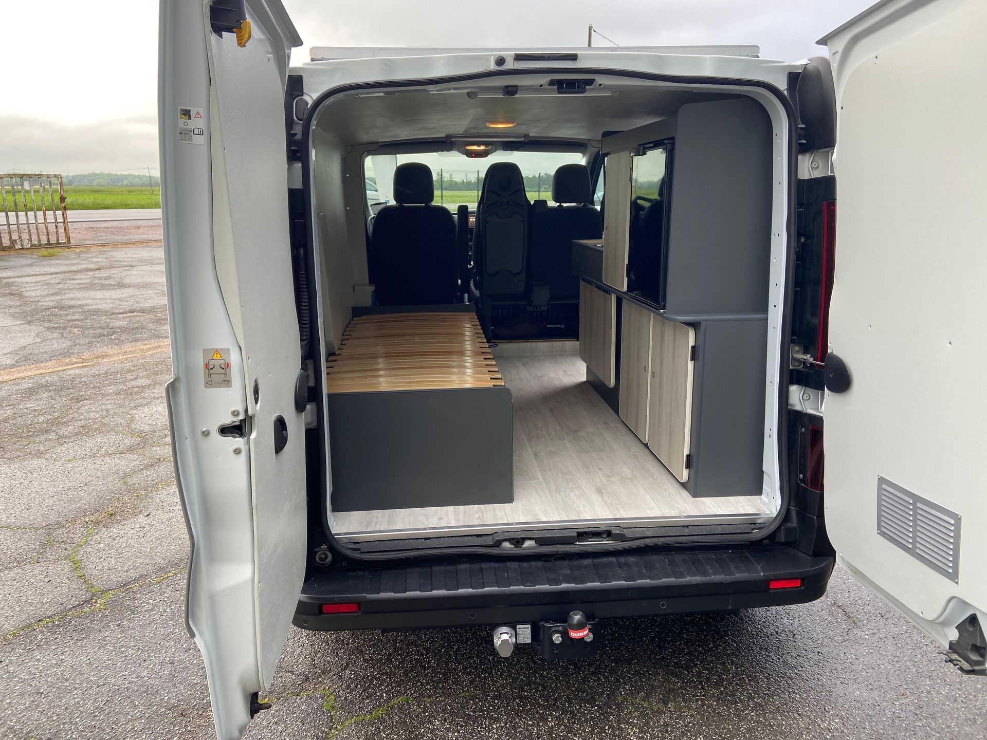Envie de partir avec une remorque à l'arrière de votre van ? Demandez-nous d'ajouter un crochet d'attelage si votre fourgon n'est pas équipé.